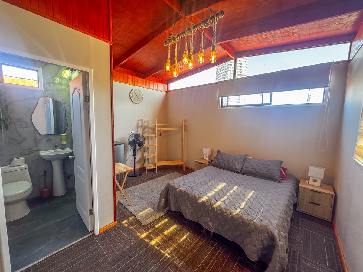 Disfruta de la sencillez de este alojamiento tranquilo. Ubicados el Playa Brava a una cuadra de la playa. • ENTRADA INDEPENDIENTE • SMART TV • AGUA CALIENTE • VENTILADOR • SOFA CAMA • WIFI • CAMARA DE SEGURIDAS 24/7 UBICACION. • BARRIO PLAYA BRAVA. • A DIEZ MINUTOS CAMINANDO A PENINSULA CAVANCHA, CASINO DREAMS, MALL LAS AMERICA, A PASOS DE VARIEDAD DE RESTAURANTES Y PABS.