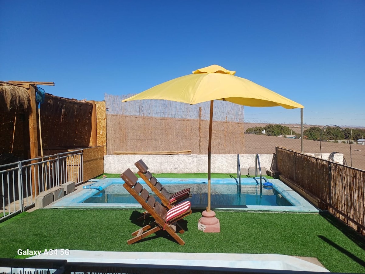 🌵Contamos con una acogedora y rústica cabaña representativa a la zona norte de Chile, con 3 habitaciones, dos baño, cocina, quincho y parrilla , piscina techada, cama elastica, taca taca, y juegos para niños. Lugar para hacer fogatas 🔥 y mirar un bello cielo estrellado y una maravillosa puesta de sol 🌅, a 5 minutos de la cocha (aguas termales terapéuticas) lugar ideal para relajarse y para quienes les gusta disfrutar la naturaleza y alejarse del ruido de la ciudad.🌵