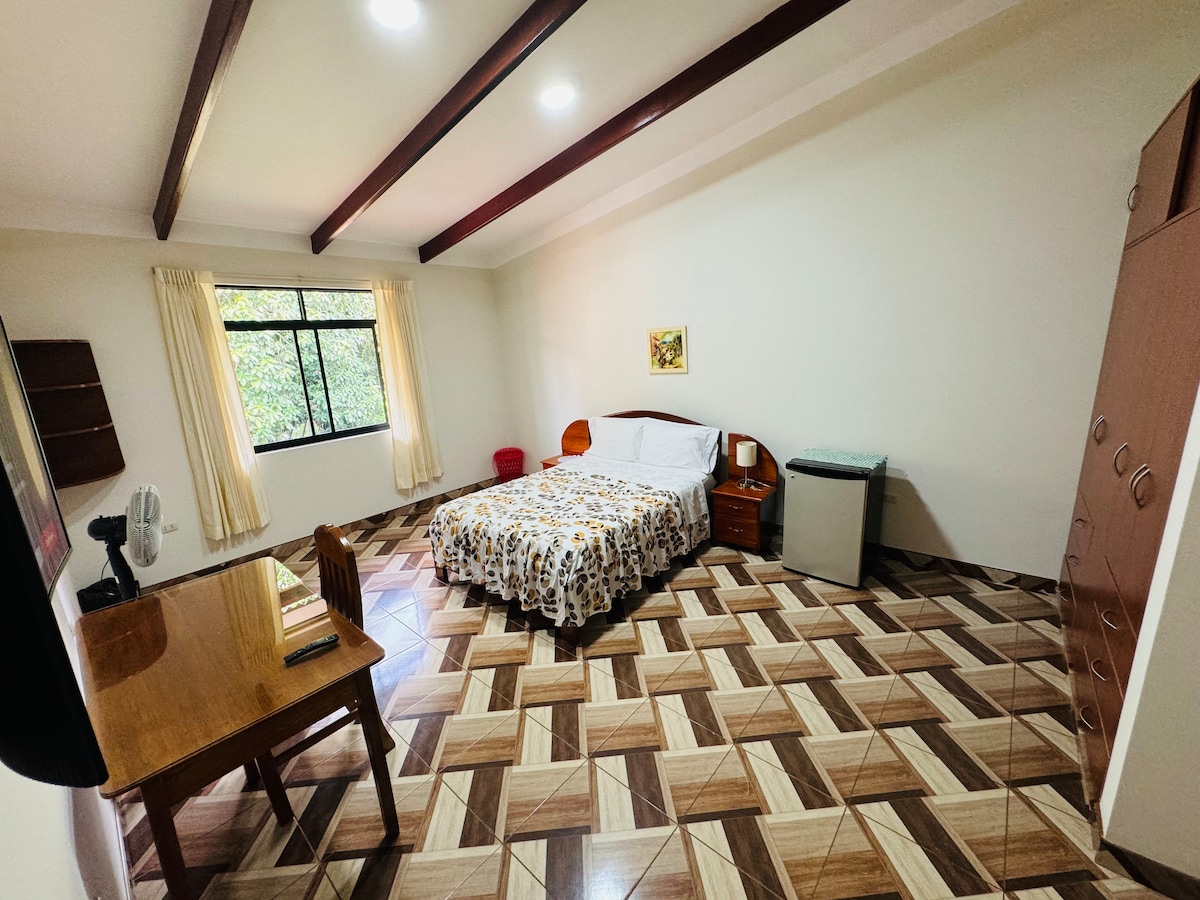 Disfruta de la ciudad de tarapoto con muchas maravillas naturales ! Alojándote en este cuarto muy cómodo con baño propio y acceso independiente, en zona residencial muy segura, a 3 minutos de la plaza central, contamos con internet, cámara de seguridad, televisor, ventana bastante grande, una cama de 2 plazas súper cómoda, un closed, una mesa 2 sillas muy cómodas, un velador, y un pequeño stand movible. Te brindamos una guía de los lugares turísticos más extraordinarios de la ciudad!