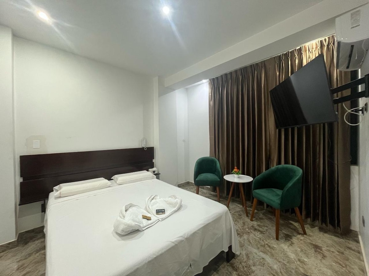 Disfruta del fácil acceso a tiendas y restaurantes populares desde este encantador espacio para quedarte. - Acogedor. - limpió e higiénico. - Céntrico. - Principal avenida cerca al aeropuerto, cine, parque y restaurantes