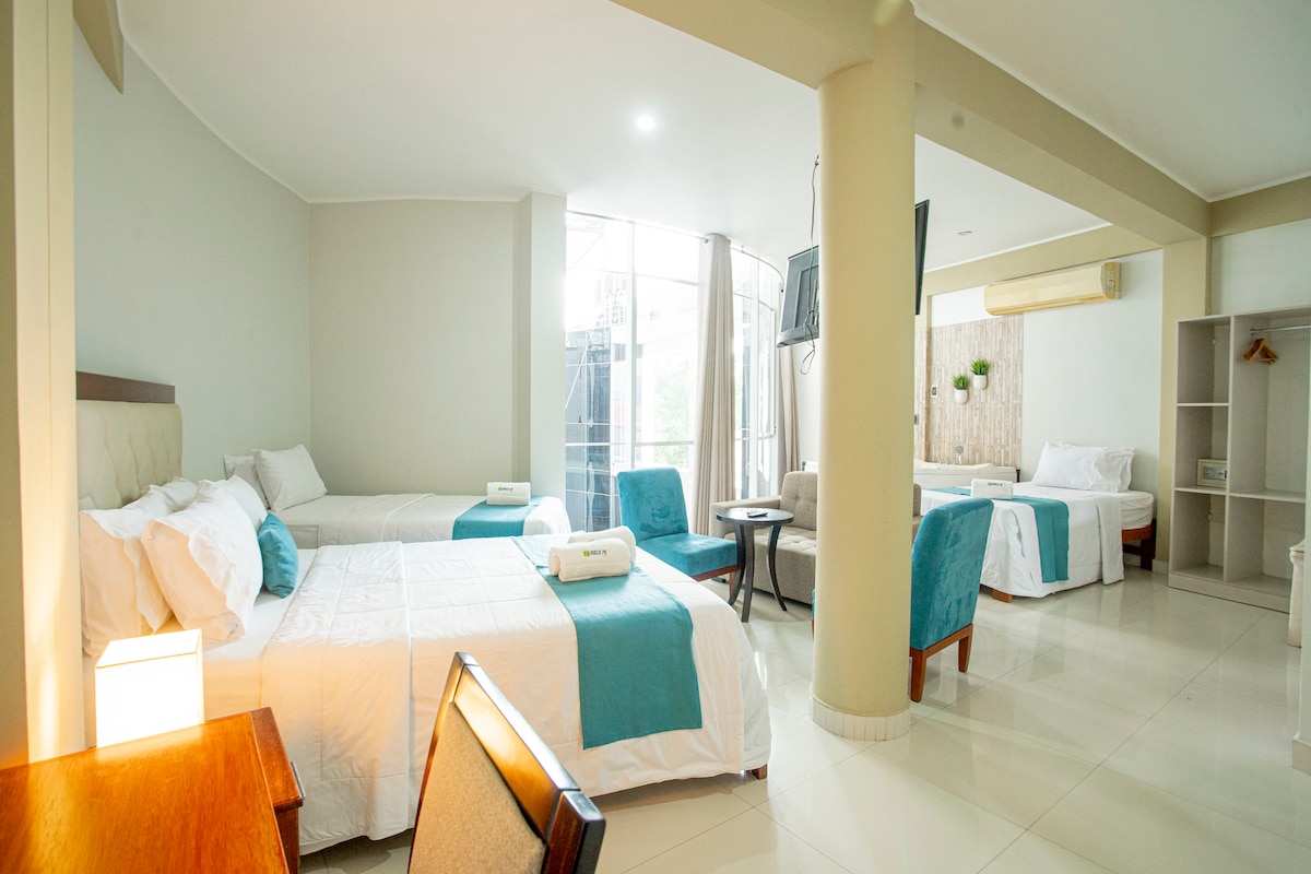 SOMOS UN HOTEL 3 ESTRELLAS, LIDER GRACIAS A NUESTROS CLIENTES Y USUARIOS. Nuestros servicios: * Habitaciones modernas. * Patio de comidas. * Estacionamiento privado. * Paquetes turísticos. * WiFi. * Aire acondicionado. * Garantía y satisfacción. Reserva ahora y accede al siguiente beneficio: * Desayuno de cortesía. * Ingreso a nuestra Piscina
