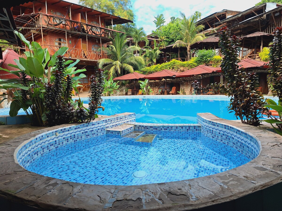 Cómoda habitación independiente de 23 m2. Cuenta con un Smart TV 32" con conexión a internet y TV/Cable, Frigobar, Aire Acondicionado para los días calurosos y Vista hacia los jardines. La tarifa de la habitación incluye desayunos, además de poder usar nuestras áreas comunes: Piscina, Cochera, Zona de Hamacas, WIFI, Restaurante y atención las 24 horas del día. CasaBosque es el mejor lugar para relajarte y conectar con la naturaleza a solo 5 minutos del centro de Tarapoto. Te esperamos!