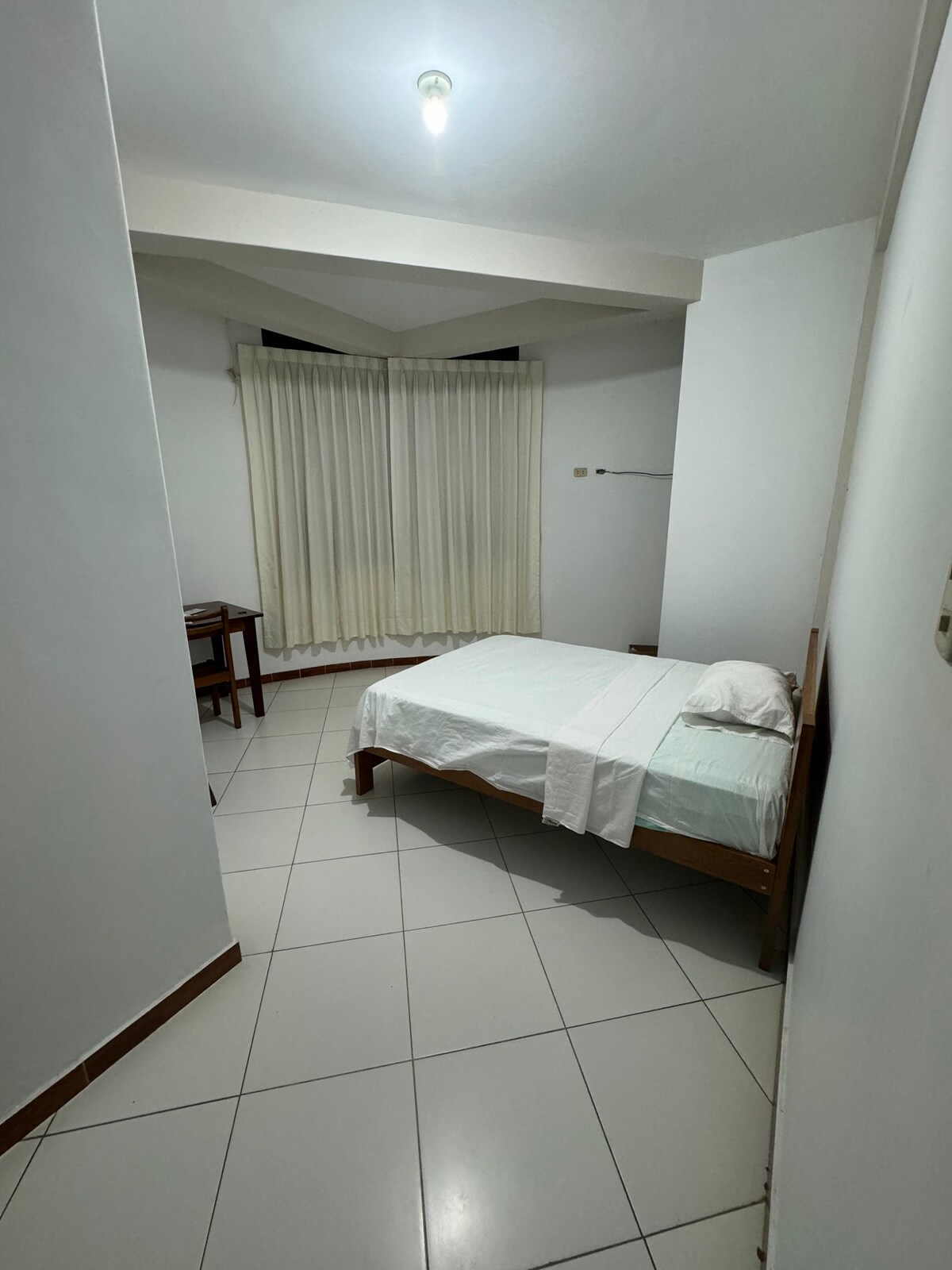 Habitación Privada con una cama de 2 plzas., baño privado. El costo de la habitación incluye acceso gratuito a la cocina-comedor (autoservicio), coffe bar (café y té de cortesía por las mañanas) y demás espacios compartidos. Estarás en una casa típica de la zona, en un ambiente familiar, en una zona tranquila muy cerca a la plaza de armas, cines, restaurantes, farmacias, empresas de transporte interprovincial, aeropuerto. Si viajas en familia, este será el lugar ideal para tu estadía.