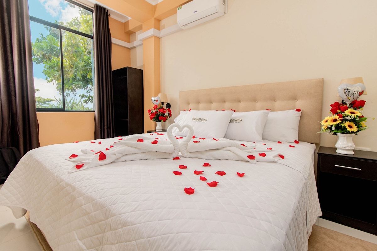 ✔️ Cama Queen cómoda, ideal para descansar tras un día de aventuras por cataratas y lagunas. ✔️ Espacio ventilado, con luz natural, baño privado y agua caliente. ✔️ Decoración cálida con esencia amazónica que inspira calma. ✔️ Ambiente sereno para parejas que valoran la limpieza, el silencio y el buen trato. ✔️ A pasos del centro de Tarapoto, en una zona segura y tranquila. 🌿 Elige una experiencia cercana, natural y auténtica, te hará sentir como en casa. 🌿No incluye Desayuno
