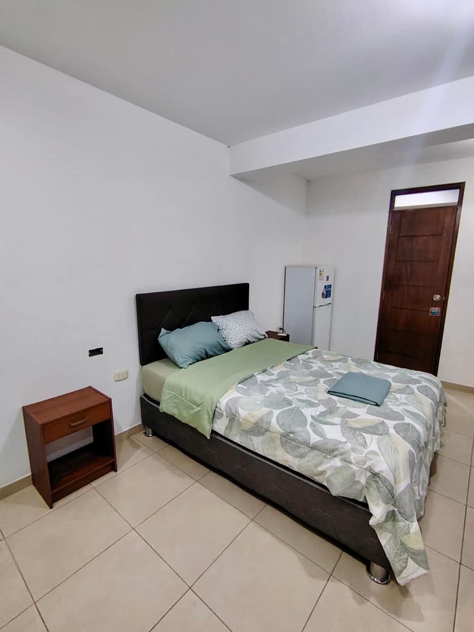 Disfruta de la sencillez de este monoambiente acogedor y céntrico EN EL DISTRITO DE MORALES. Cerca de las grandes discotecas, bares y restaurantes. A 5 minutos de Plaza Vea, a 10 minutos del distrito de Tarapoto en motocar. Cuenta con un dormitorio con una cama de 2 plazas y otra de 1 plaza y media, un baño y una cocina equipada con menaje y utensilios básicos, licuadora, olla arrocera, sandwichera, cafetera y frigobar. Ideal para parejas y amigos.
