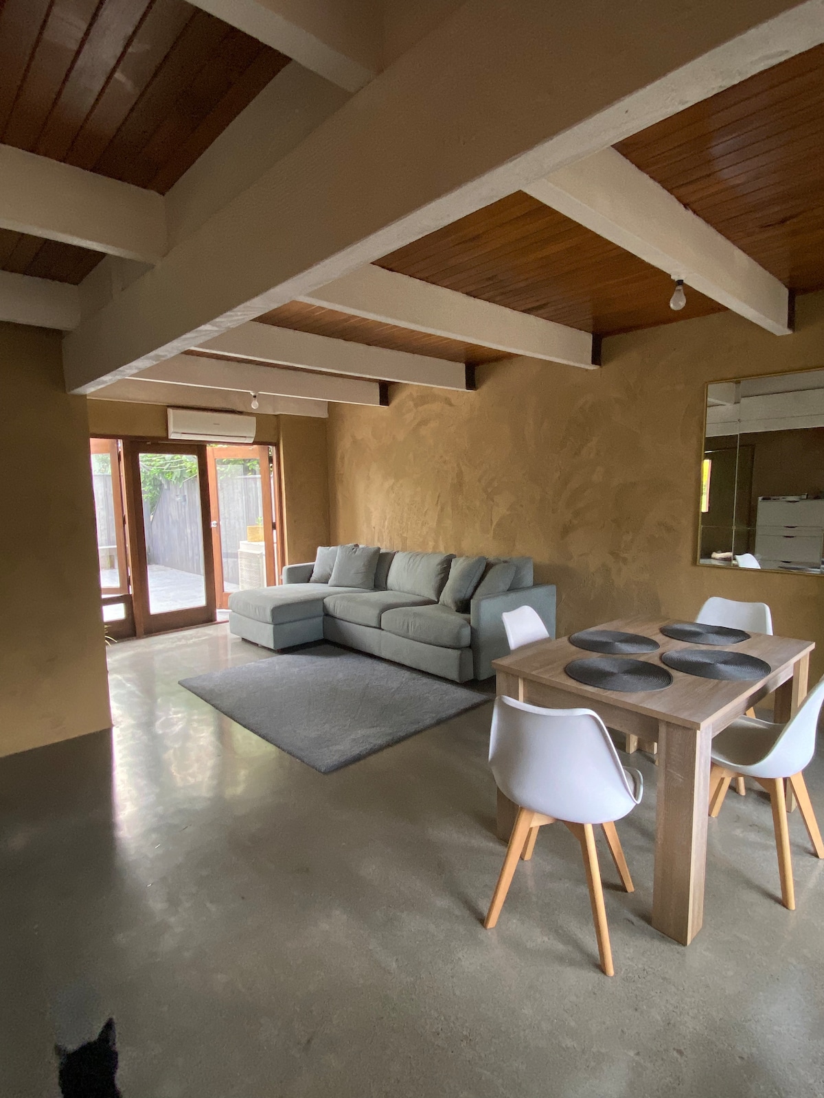 Our home is set on the city boundary just 8 minutes from the City Centre, 5 minutes from Palmerston North Hospital, 15 minutes to Massey University and very well positioned for walking, tramping and biking tracks around the Manawatu . Our modern home is on 2.5 acres and surrounded by open countryside with great views to the windmills and just outside the apartment, we have a lovely Highland cow named Toffee who shares the paddock with some Wiltshire sheep, an interesting self shearing breed.
