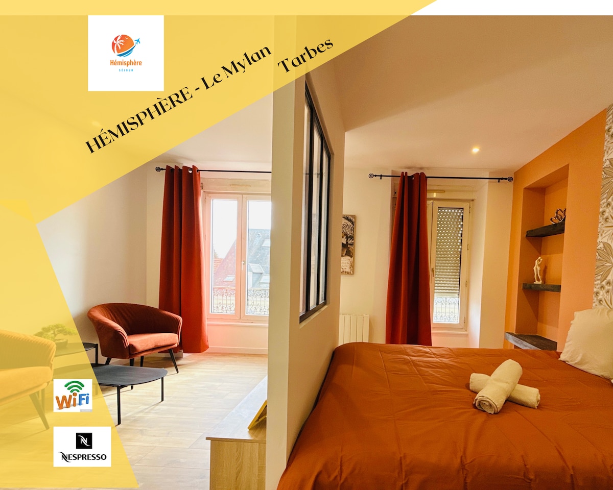 Au cœur de Tarbes, appartement de charme dans une belle bâtisse historique. Tout juste rénové, spacieux, fonctionnel, lumineux & parfaitement équipé. Ce bel appartement, avec parquet ancien et beaux volumes, dispose d'1 chambre et d'1 salon avec canapé convertible (jusqu'à 4 couchages). Il est idéalement situé à proximité de tous les commerces et des différents accès. Stationnement gratuit possible dans la rue. Nous avons hâte de vous accueillir