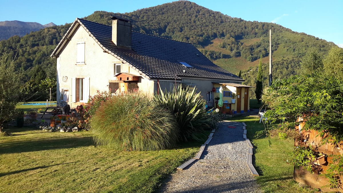 Petit déjeuner compris. Mon logis neuf,indépendant, est proche des Pyrénées,de Lourdes et son sanctuaire, de Pau et Tarbes (villes les plus proches),sur l'axe routier Tarbes (sortie autoroute) et PAU(sortie autoroute Soumoulou).Vous apprécierez,(je l'espère),les espaces extérieurs, la vue sur les Pyrénées, (Accès libre aux chevrettes,ânesses,poneys, jument).Voyageurs solo ou en famille.Tout confort avec une chambre lit 2 personnes, et canapé lit 2pers(à dispo:lit bébé chaise haute