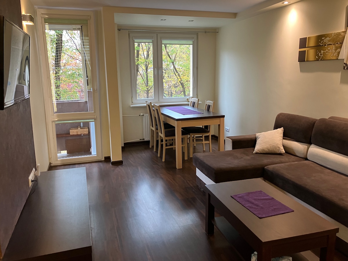 An exclusive, modern and functional apartment with a bedroom, large living room with a beautiful view of Wroclaw. It is located in a new apartment building on the 13th floor with its own underground car park and 24/7 security. The fully equipped kitchen allows you to prepare homemade meals. High standard, comfort, security and a sense of privacy make guests feel at home. Wireless Internet and Netflix. Access to the gym, dry and steam sauna, jacuzzi and children's playroom.
