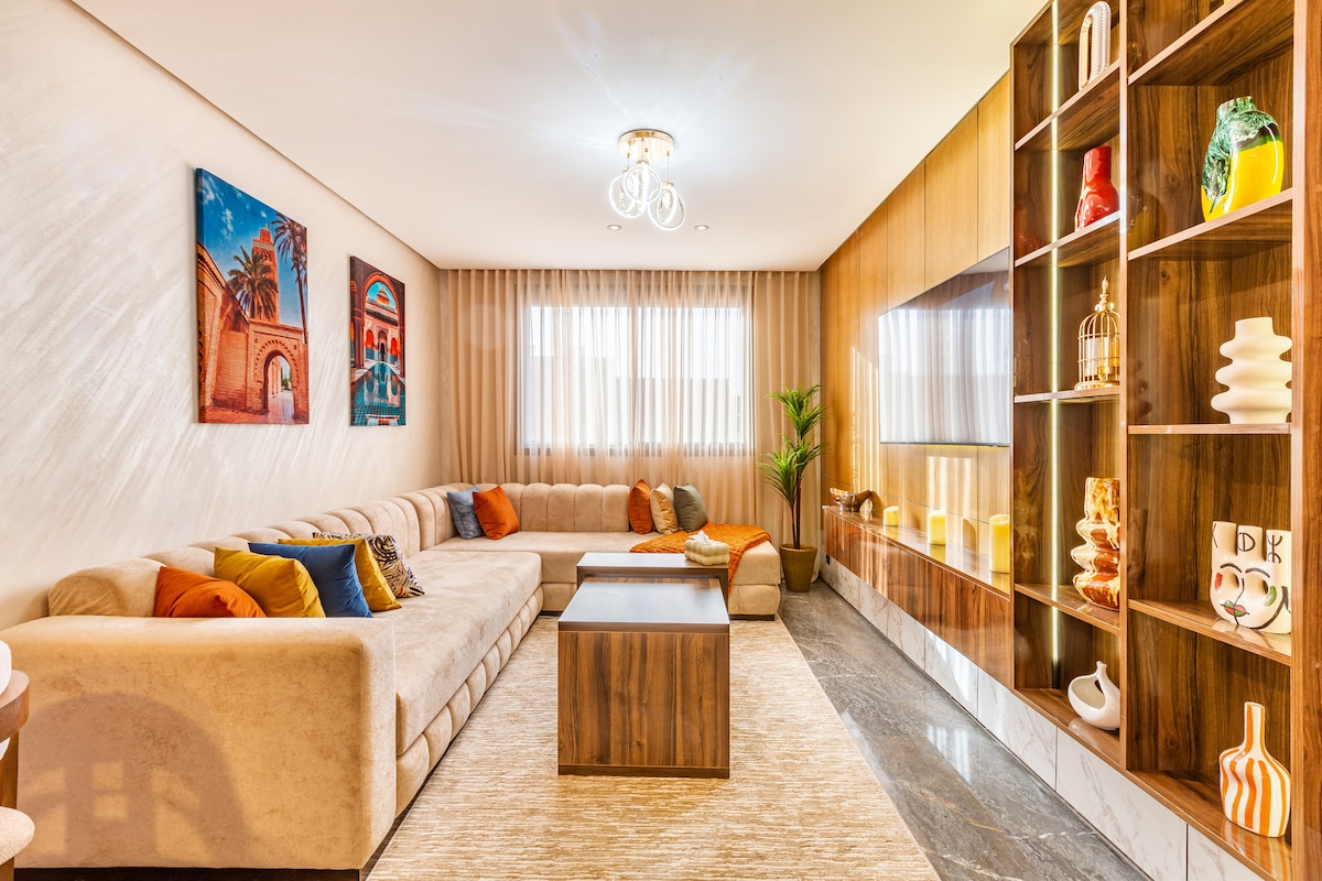 Welcome to our thoughtfully designed one-bedroom apartment with pool, where positive energy flows through every inch. in the center of Gueliz 10 min walk from carré Eden and the 5 minutes from the train station. Perfectly situated, you'll be surrounded by an array of restaurants, cafes, and shops. Well Equipped, we've taken care of every detail, high-speed internet, IP TV, Netflix, ensuring a seamless experience and make your stay stress-free
