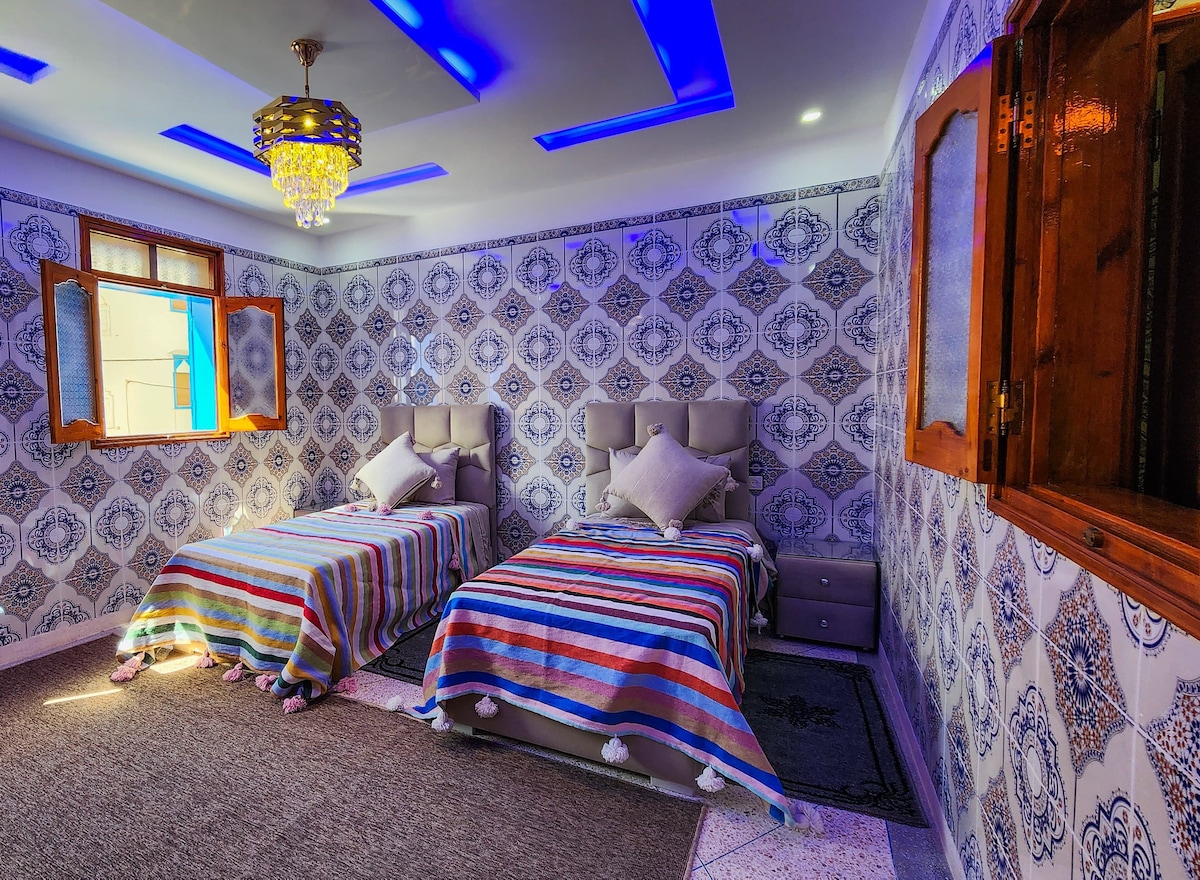 Experience Moroccan originality in a charming Beldi chic private apartment in Sidi Ifni with a splendid view, blending contemporary design and Amazigh touches. Perfect for surf and nature lovers. An ideal stay combining authenticity, comfort, and refinement. We care for our guests like top hotels: high-speed WiFi, all types of towels, cotton swabs, coffee, soap, slippers…