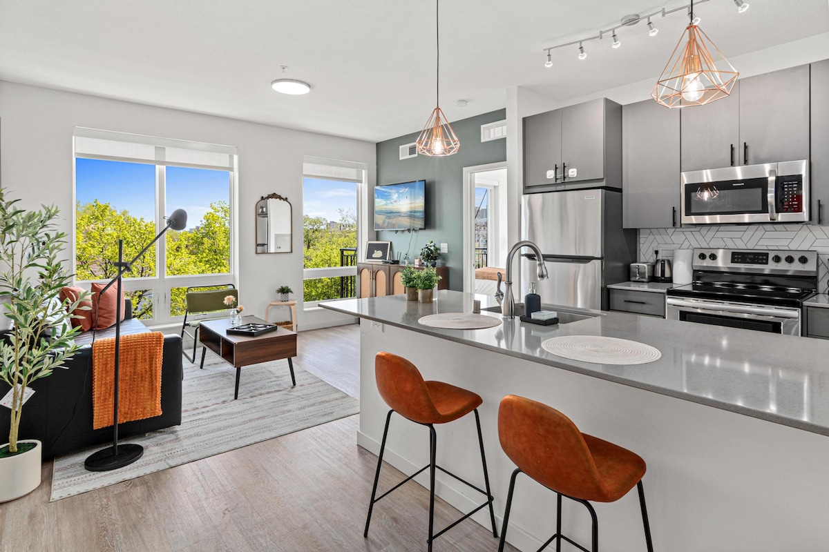 Located in the heart of Eat Street, Good Dwelling is close to everything you need while in Minneapolis: A grocery store on the first floor, cuisine from all over the world, coffee shops, donut shops, cocktail bars and live music. Enjoy an urban getaway in a fully furnished 1 bedroom apartment with a full kitchen, high speed internet, and cable tv. We have off-street parking, a complementary Coffee Shop, Workout Room, Rooftop Deck, and Pizza Kitchen. All within a short walk to Upton or Downtown!