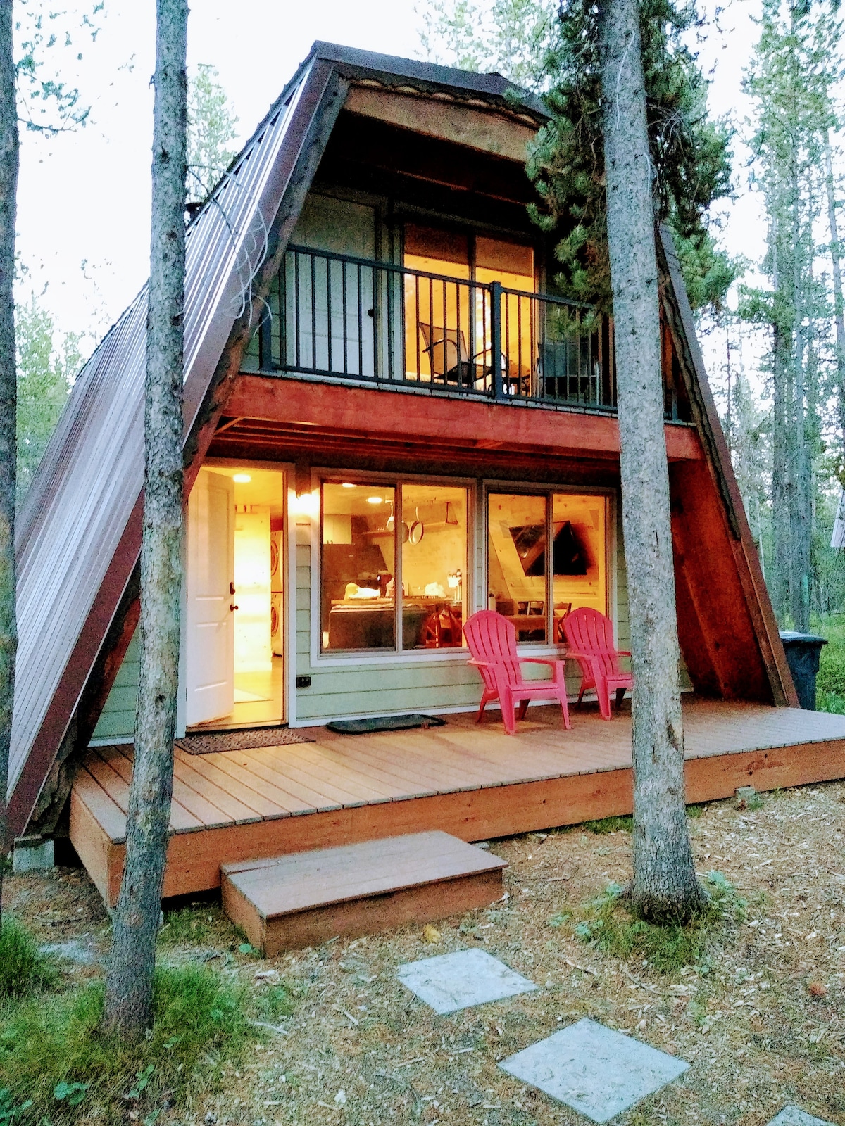 This cozy A-Frame cabin is perfect for couples looking for a simple place to rest and relax after a long day of exploring the beauty of the Yellowstone area. The cabin has a small kitchen for your basic cooking needs and a comfortable sleeping space. The cabin is quiet and is hidden away in the woods for privacy. The property shares an outdoor kitchen and fire pit with our other cabin. NOTE: Must be able to climb a small ladder to reach the loft sleeping space. Futon available on main floor.