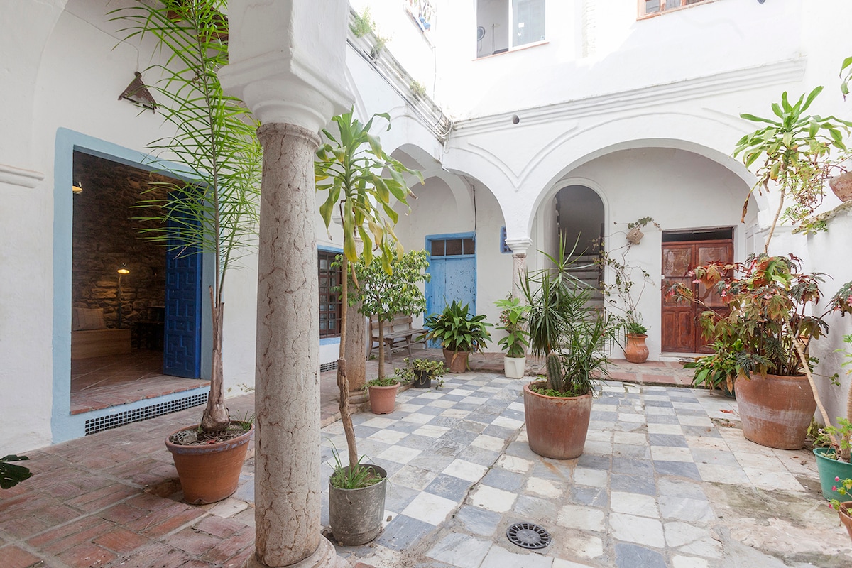 Nuestra casa se encuentra situada en un típico patio de vecinos andaluz, en una de las calles principales del casco histórico de Tarifa. Es una casa muy luminosa y con mucho encanto. Paredes de piedra, vigas de madera, suelos hidráulicos y de madera... y la cocina en la azotea, con unas vistas impresionantes al Estrecho y a Marruecos