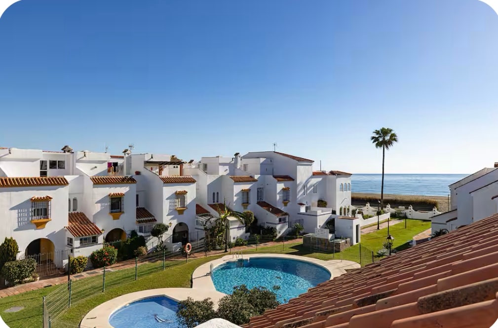 Mit hus ligger i første række ud til vandet. Det er et hus på 124 m2 fordelt på 2 etager. Der er en lille have og balkon. Det giver rigtig gode rammer for en dejlig ferie ved vandet. Det ligger ideelt i forhold til golfbanerne og sightseeing langs kysten og op i landet. Det egner sig samtidig rigtig godt til afslapning ved poolen eller i haven og gåture på stranden. Distance Ca. 0 meter til stranden Ca. 3 km til nærmeste golfbane Ca. 5 km til Estepona centrum Ca. 38 km til Gibraltar