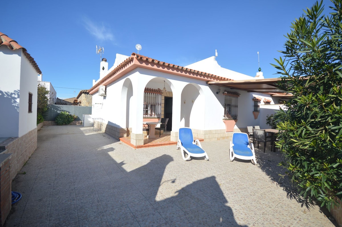 Vivienda adosada de 80m2 con patio, en zona tranquila de ambiente familiar, sin problemas de aparcamiento. Está ubicada en calle Mar Tirreno a 150m de la playa de los lances. Este alojamiento consta de cocina, baño y aseo totalmente equipados, dispone de una habitación con cama de 160x200 cm y otra con dos camas individuales de 90x190cm. Ideal para matrimonios con nińos o parejas No se admiten mascotas QUEDA PROHIBIDO CUALQUIER TIPO DE FIESTAS O EVENTO QUE HAGA MOLESTAR A LOS DISTINTOS VECINOS