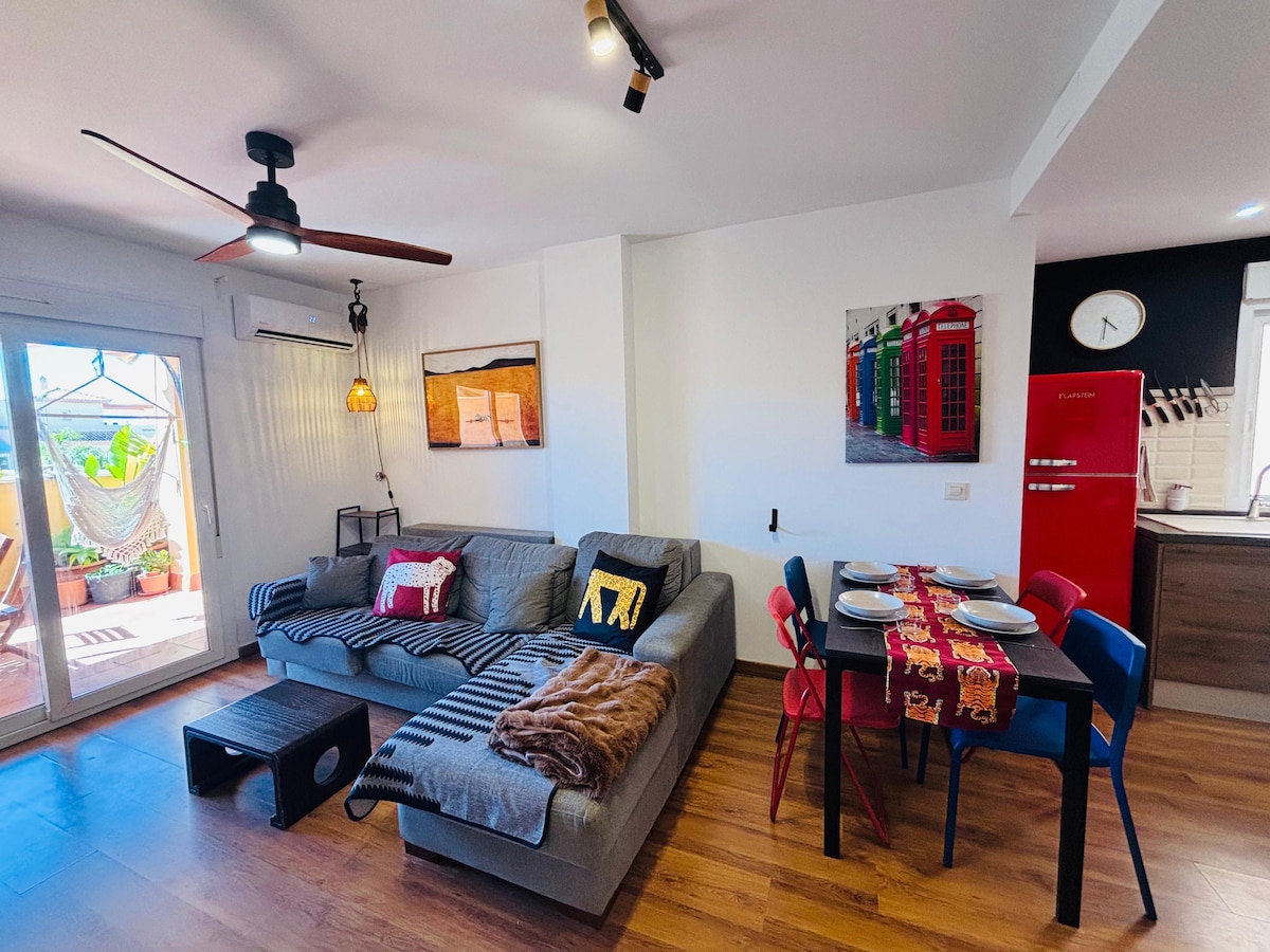 Nuevo, luminoso studio con mucho estilo y personalidad, de diseño industrial en la urbanización nueva con piscina "Terrazas de la Marina" en Tarifa. Perfecto para una pareja o una persona sola en búsqueda de vacaciones en un entorno inolvidable! Paredes de falsos ladrillos, acero, madera, vigas falsas, puntales restaurados, toques vintage... le dan a Mosaïco su originalidad y su encanto diseño! AIRE ACONDICIONADO (frío y calor), WiFi FIBRA OPTICA 600MB y PARKING INCLUIDO. Cama doble 140x200