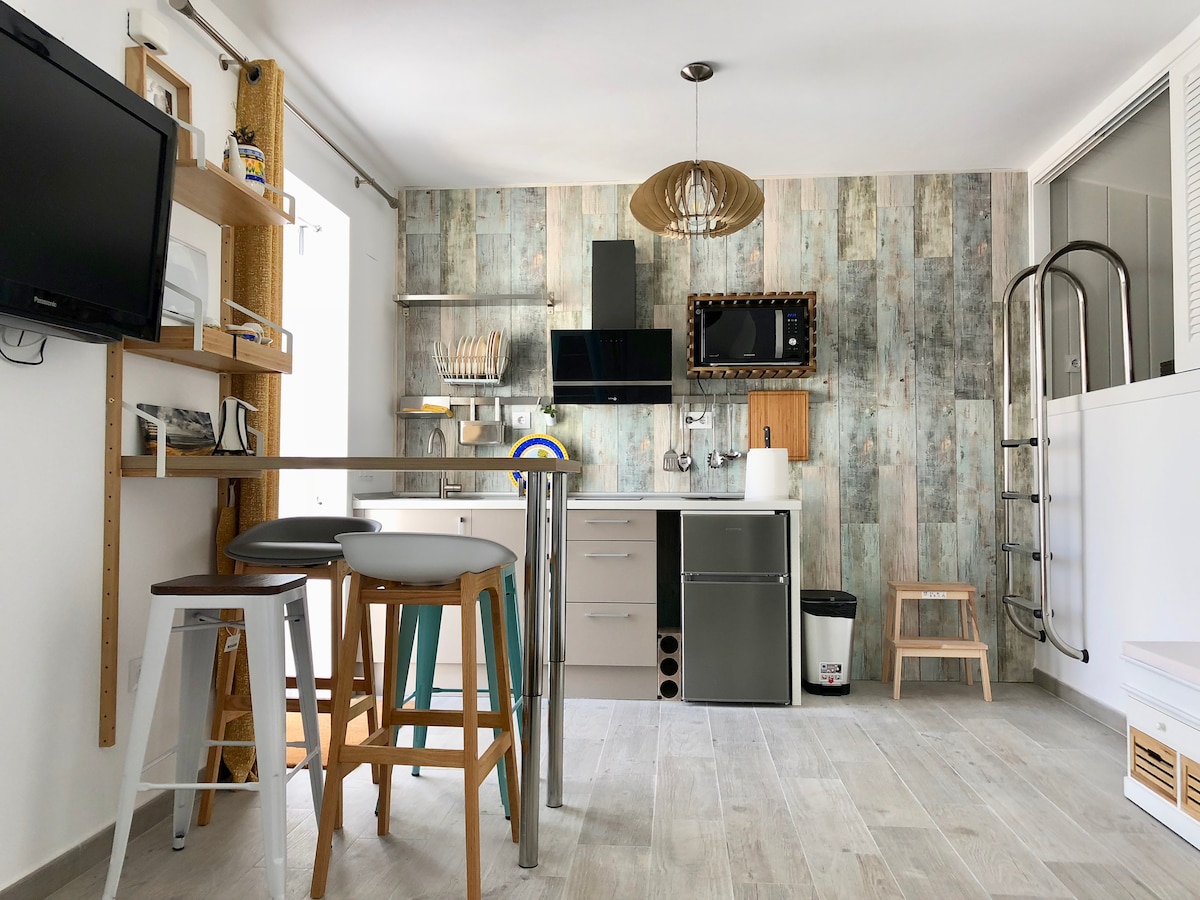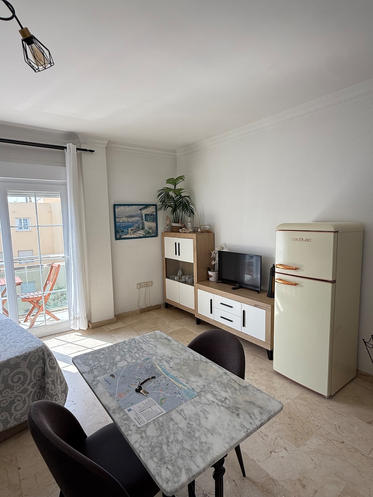 Estudios en el centro de Zahara, todos los servicios a un paso: Mercado, tiendas, bares... La playa se encuentra a 150 metros. Estudios coquetos con todo lo necesario para pasar una estancia agradable. Ideal para parejas. Muy luminoso, con ventanal grande mirando hacia la iglesia. La zona de cocina esta equipada con una placa de inducción portátil, batería de cocina, microondas, cafetera, tostador, nevera con congelador. Dispone de cama doble de 150 y aire acondicionado. No se aceptan mascotas