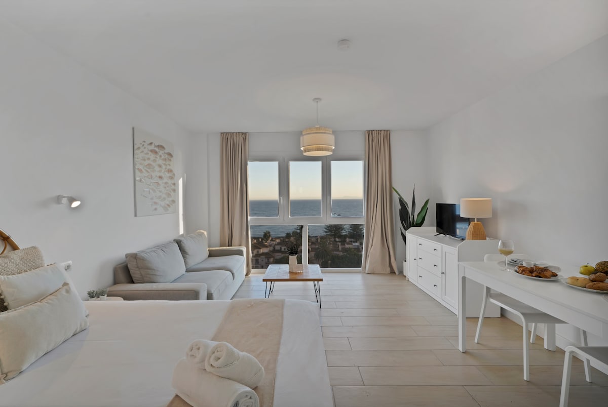 Studio op benedenverdieping van Villa met adembenemend zicht op zee, strand, en Sotogrande. Alles kan te voet: strand, restaurants, supermarktjes en winkels. Tuin en zwembad worden gedeeld met huurders 2de studio en eigenaar. Moderne en zeer luxueuse inrichting.: nieuw.
