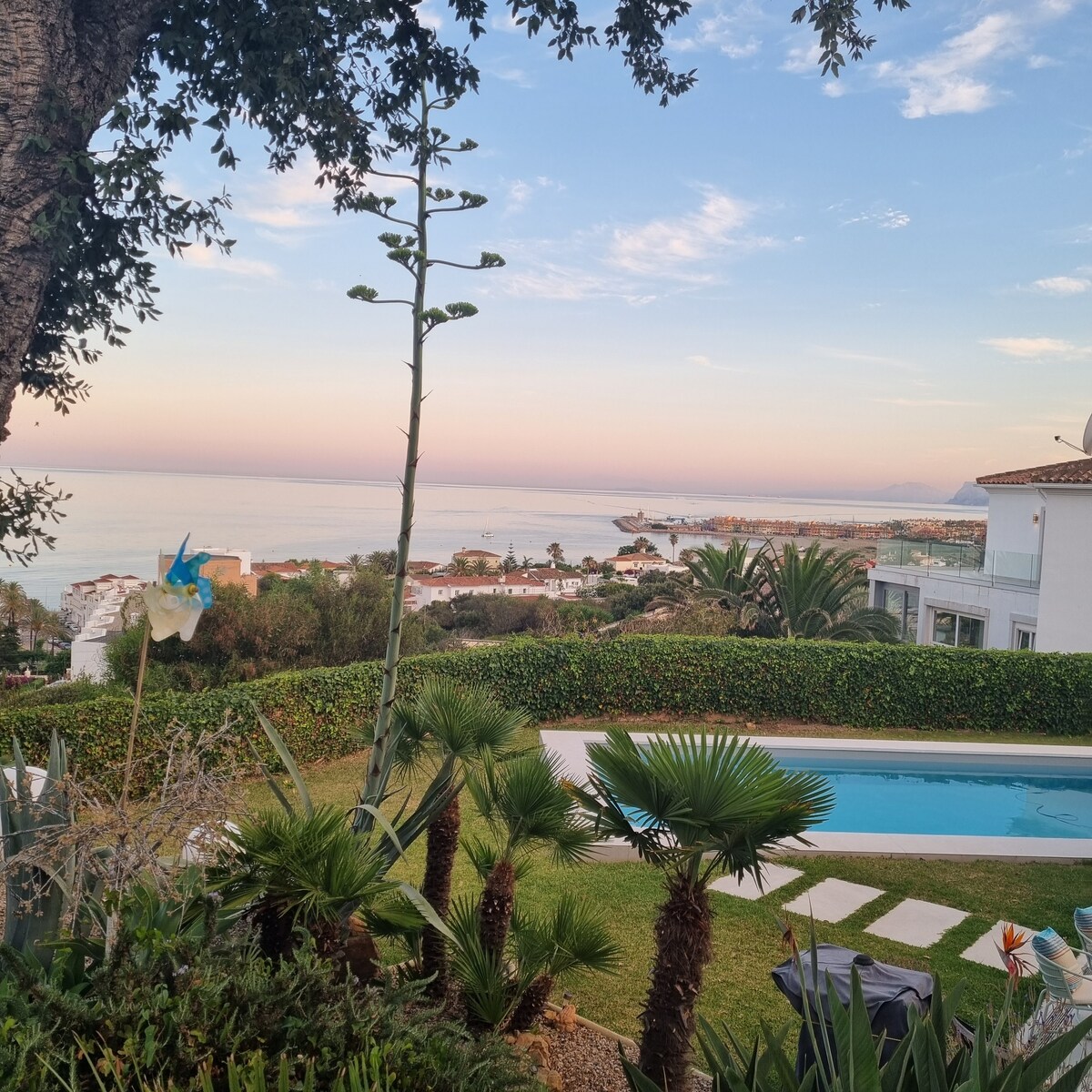 Studio op benedenverdieping van Villa met adembenemend zicht op zee, strand, en Sotogrande. Alles kan te voet: strand, restaurants, supermarktjes en winkels. Tuin en zwembad worden gedeeld met huurders 2de studio en eigenaar. Moderne en zeer luxueuse inrichting.: nieuw.