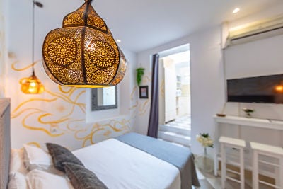 Situada en la primera planta se encuentra orientada a una zona muy conocida como es La Plaza de San Hiscio. Su estructura cuenta con dos plantas en su interior, donde la primera esta formada por salón, cocina, baño privado y un balcón con vistas a la plaza. En la segunda planta podemos encontrar la habitación, equipada con todo lo necesario para tu descanso. Esta habitación cuenta con una pequeña puerta que te conducirá a una terraza privada.