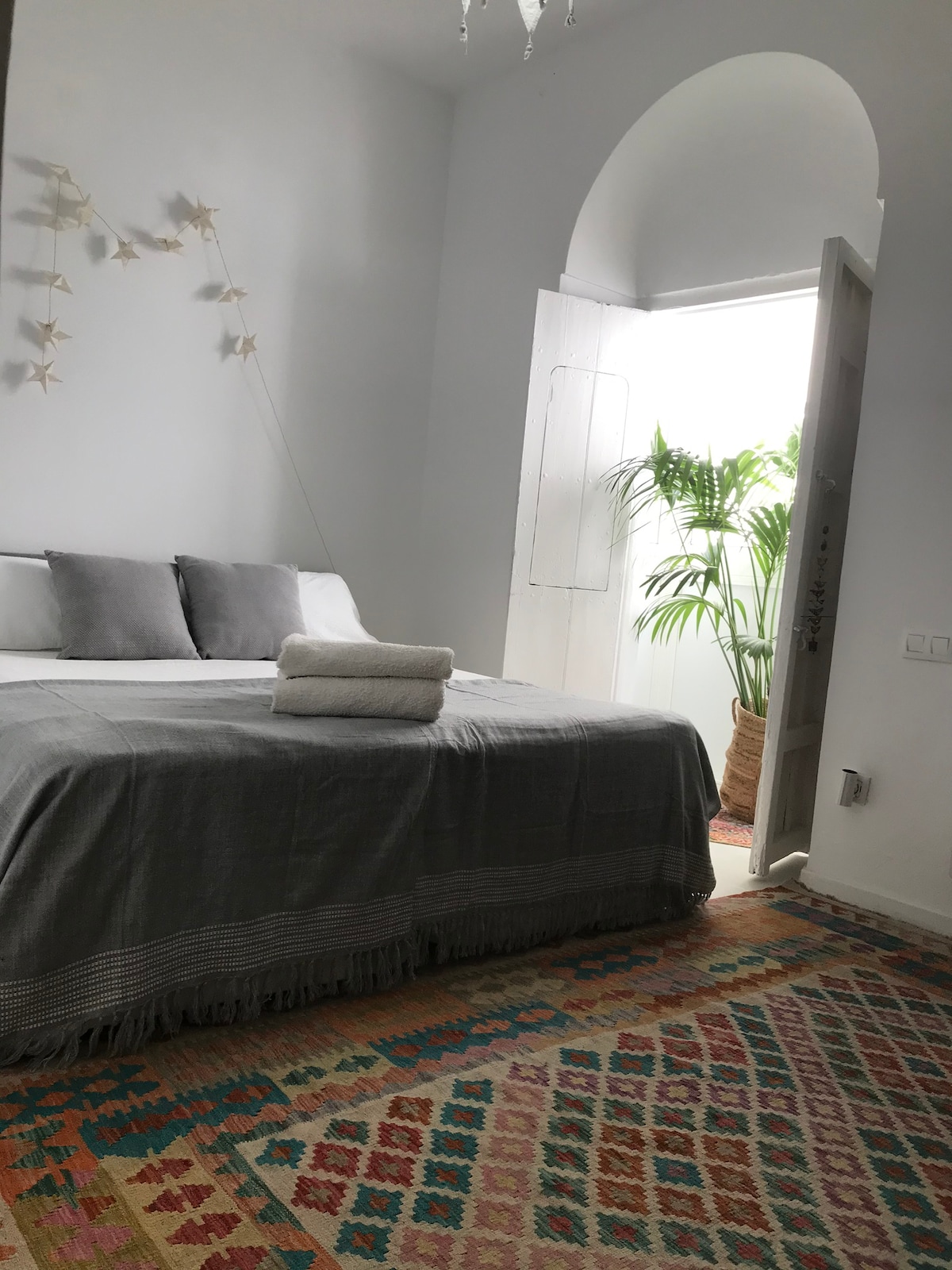 Apartamento tranquilo en el centro de Tarifa. A 5 minutos de la playa andando. Parking municipal a 150 metros en Calzadilla de Téllez. Check-in: si la llegada es antes de las 15.00h, damos la opción de dejar las maletas en la entrada mientras se realiza la limpieza y se hace entrega de las llaves. A partir de las 15.00h las llaves se depositan en una caja de seguridad ubicada al lado del portón (antes de entrar al patio). Entrada a las 15.00h y salida a las 11.00h.