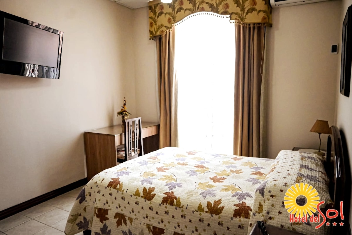 ¡Encuentra el descanso que te mereces en Hotel del Sol! Disfruta de nuestra acogedora habitación individual con balcón y desayuno incluido.