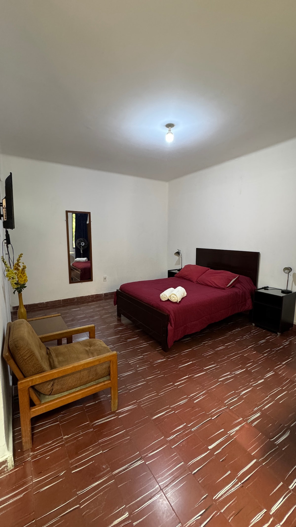 Relájate en este espacio tan tranquilo y elegante. Ubicado a 10 minutos del centro de la ciudad, contamos con todos los servicios incluidos, para que tu estancia sea la mejor experiencia en tus vacaciones. Situado en una de las zonas residenciales de la ciudad, tranquilidad y comodidad a tu disposición. Precio establecido por noche por persona.