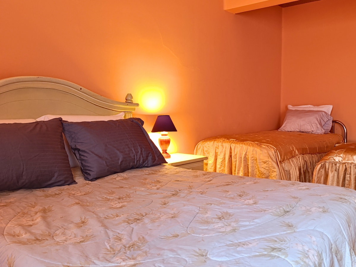 ¡Bienvenido/a a nuestra suite en la zona central! Nuestro departamento recién remodelado cuenta con dos ambientes: una cocina y comedor, y un dormitorio con una cama matrimonial, con opcion de añadir un colchon en el piso, ademas cuenta con baño privado y parqueo. Nuestra ubicación es perfecta estamos a 6 cuadras de la Plaza Principal, a solo 2 cuadras de un Mirador impresionante y a 4 cuadras del Mercado Central. ¡Esperamos que disfrutes tu estadía con nosotros!