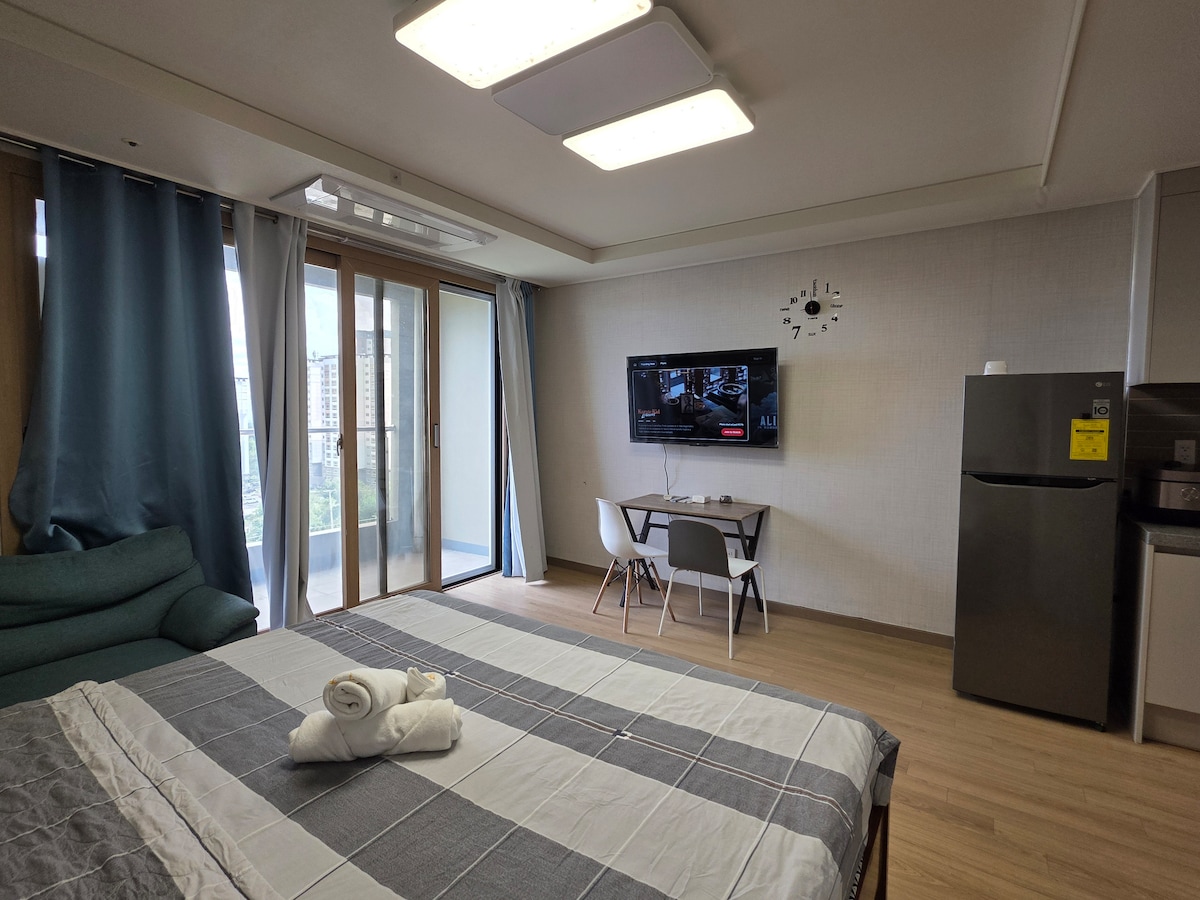 Modern 44sqm studio condo with balcony, Fiber Internet/Wi-Fi, fully equipped kitchen and other amenities. Access to pool, 24h security and free parking in basement or street level. Peaceful and nice environment so you can relax and wake up refreshed. Can accommodate up to 2 adults, has 1 Queen bed and 3 seater sofa Located just 10min from Clark Int Airport and just 500m from Hann Casino, Marriott and Swissotel. Have 24h supermarket next door as well as coffeeshops, restarants and more.