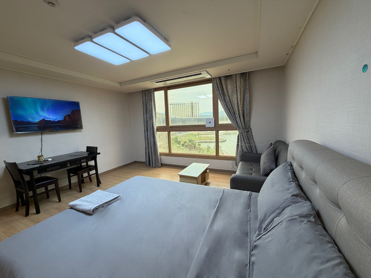 Enjoy your stay inside Clark Freeport Zone in this spacious & peaceful 2 Bedroom Condo with a view of the man-made lake and lushious green mountains where you can jog or just walk around. * Wi-Fi with 100mbps internet speed * 2 large TVs that comes with a Netflix subscription. * located in D'Heights resort beside Clark Hilton Hotel and Casino. * near Park & Recreational Area & nice restos * 16 mins drive to Dinosaurs Island * 6 mins drive to Aqua planet * 6 mins drive to Clark safari
