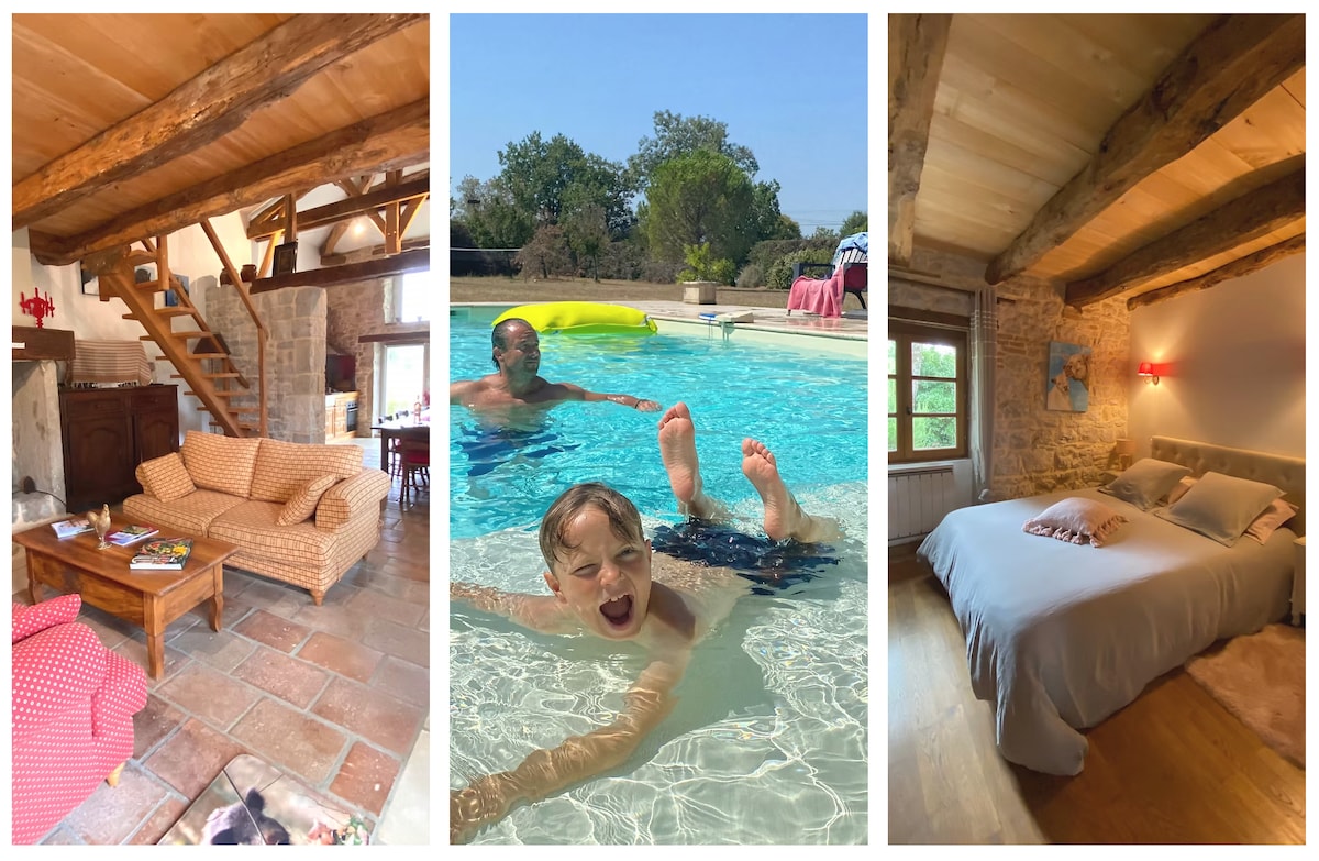 Nid surplombant une mer d'arbres. Ancien four à pain devenu une maison lumineuse à l'abri des regards, avec une petite cour japonisante à l'entrée, un jardin à l'arrière donnant sur une forêt, au cœur du Quercy. Rez de chaussée en pierre, étage en bois, poêle à bois (indispensable l'hiver !), chemins de randonnée immédiatement accessibles, nombreuses activités culturelles et sportives dans la région. Idéal pour amoureux de la nature, des promenades, du calme.