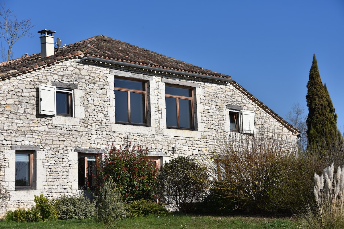 Du calme et de l'espace... .Sur les coteaux du Quercy, cette ancienne grange a fait l'objet d'une belle rénovation pour vous offrir un logement spacieux, fonctionnel aussi généreux en espace à l'intérieur qu'à l'extérieur. Les grandes baies vitrées donnent une allure contemporaine à la façade.Terrasse avec piscine hors sol(8m/4m),le terrain de pétanque, les bains de soleil seront le lieu idéal pour une détente avec petits et grands. Agrée 3 étoiles et 3 épis gites de france