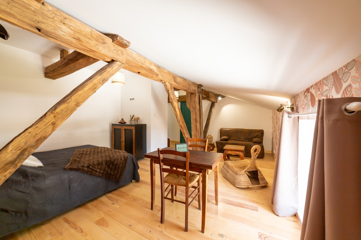 Welcome to “L’Annicha”, our home in the picturesque Quercy region of France where you will get away from the hectic day-to-day in a serene and authentic setting. The Loft (*** 64 m2 apartment for 2 people) is on the first floor of the barn with a mesmerising view of the valley in front. It has been newly renovated and is very spacious thanks to its lofty concept. Apart from the kitchen, dining and living space, a king-size bed and a bathroom, in summer you enjoy a yard and the lap pool.