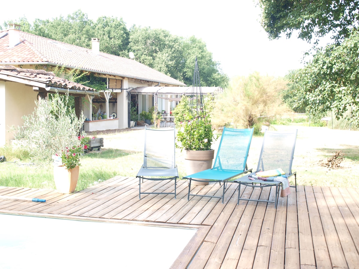 Situé sur la commune de Saint Clar, à 1H de toulouse et 1H40 de Bordeaux. Notre lieu conviendra aussi bien aux entreprises qu’aux groupes d’amis ou de familles pour vous retrouver dans un cadre naturel et calme. Un bain nordique en extérieur à bois. Une piscine de 14 mètres par 4. Un sauna extérieur à bois . Un terrain de pétanque. Un étang, des animaux bref le bonheur est dans le gers :) Possibilité de petits déjeuner, déjeuners et diners ou de livraison à votre arrivée de produits locaux.