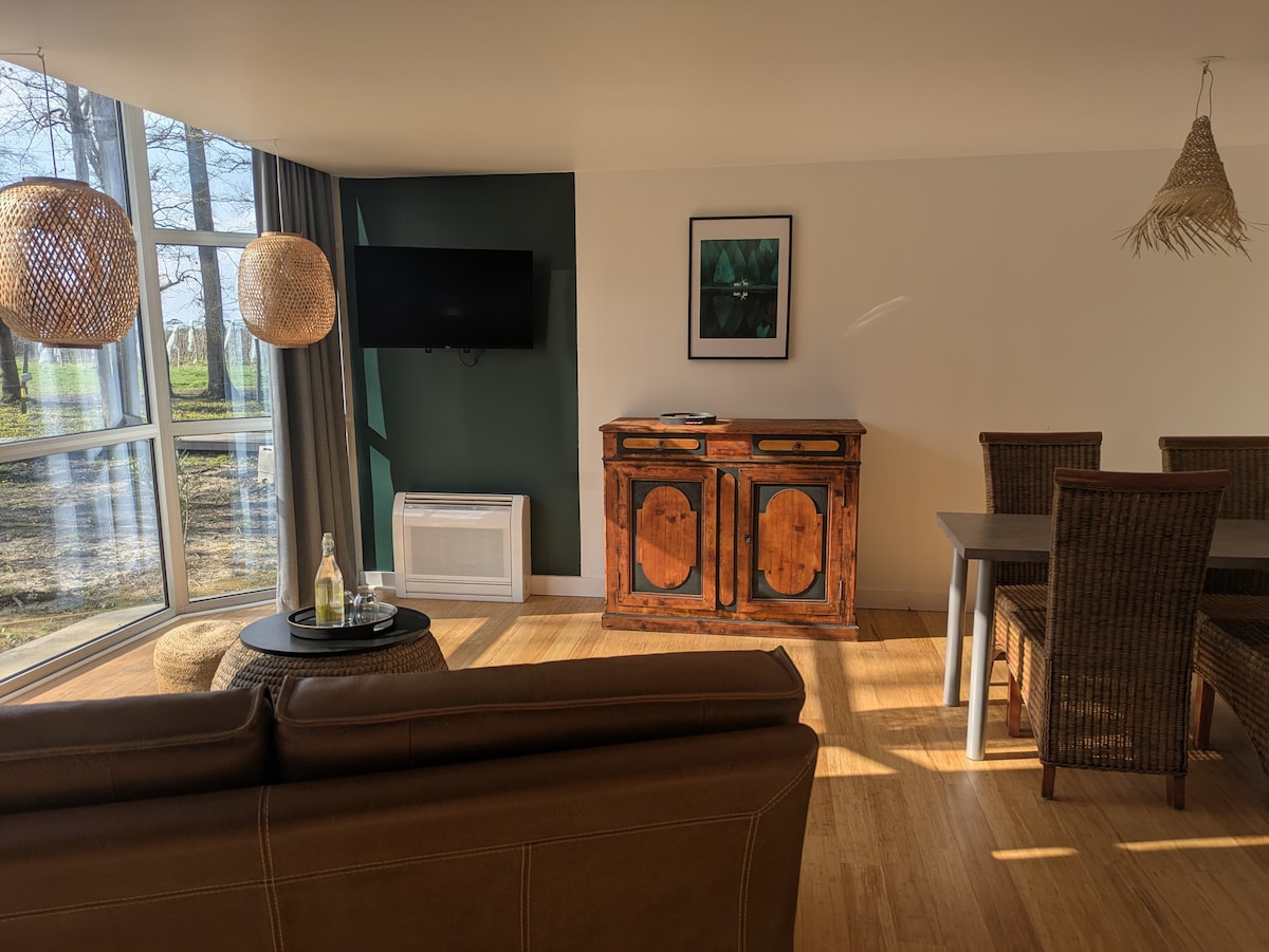 “Cocoon”, c’est le mot que nos voyageurs utilisent souvent pour décrire la Villa Spa. Située au cœur d’un parc arboré, cette villa paisible est parfaite pour une escapade romantique ou un séjour en famille. Profitez du spa privé avec vue sur le parc, d’une atmosphère apaisante, et d’un confort pensé pour vous ressourcer. Un lit d’appoint est disponible pour accueillir une 5ᵉ personne, idéalement un adolescent.
