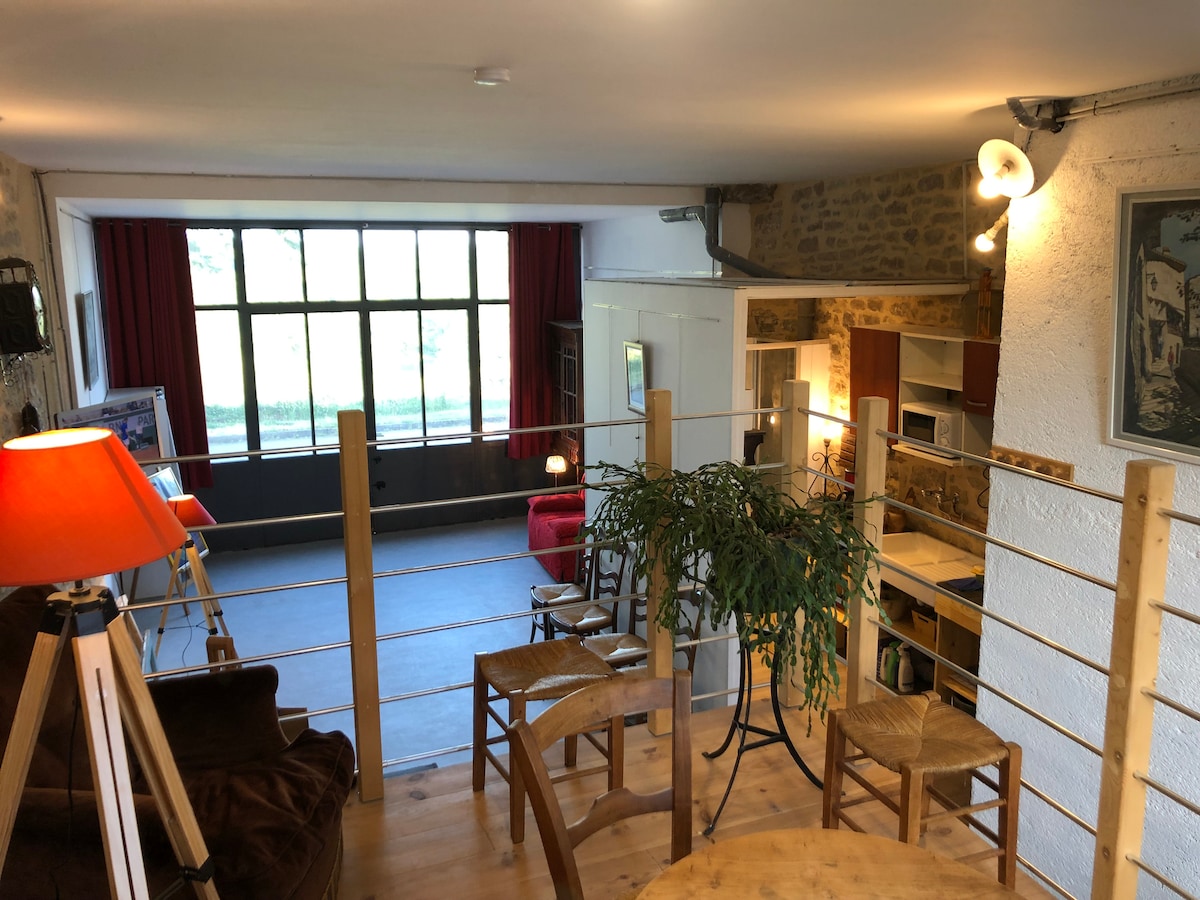 Appartement de 100 m2, climatisé, type loft, chez l'artiste Arnaud Bauville et sa compagne Elisabeth, galeriste à Saint Antonin. Un jardin vous est entièrement dédié ainsi qu'un accès à la piscine privée de la maison. A deux minutes à pieds de la cité médiévale de Saint Antonin, le Beffroi et la place de la Halle où a lieu le fameux marché du dimanche matin. Boutiques, brocantes, friperies et galeries d'art. Nombreuses festivités dont la fête foraine, vide grenier, fêtes des fleurs...