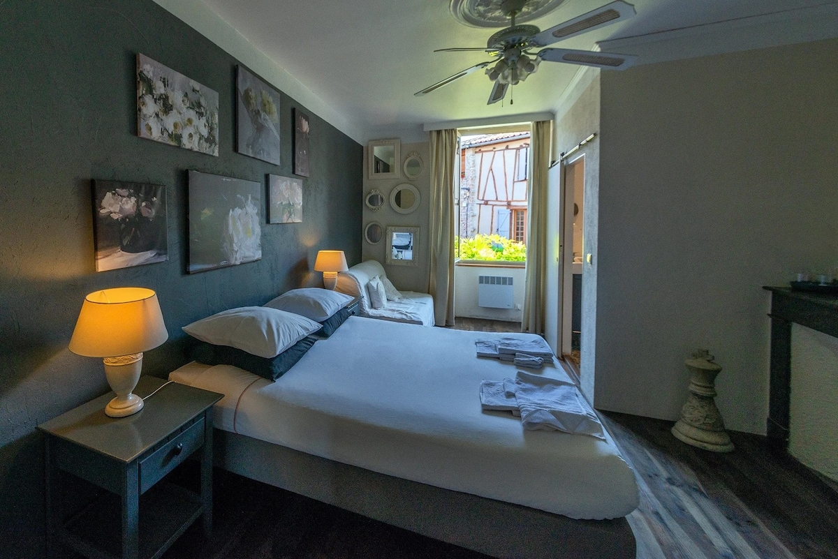 Gites Chat Noir (Alphonse) Set in a converted medieval stable on a narrow street in the oldest part of the village this quite cool in the summer warm and cosy in the winter space is perfect for couples or single guests, full of charm and character and a pleasant stroll to the heart of the village with its many bars, restaurants and local shops and museum. We are sorry but there is no parking at the Gite with the nearest being 175 meters away down by the church. For bag drop off it is possible