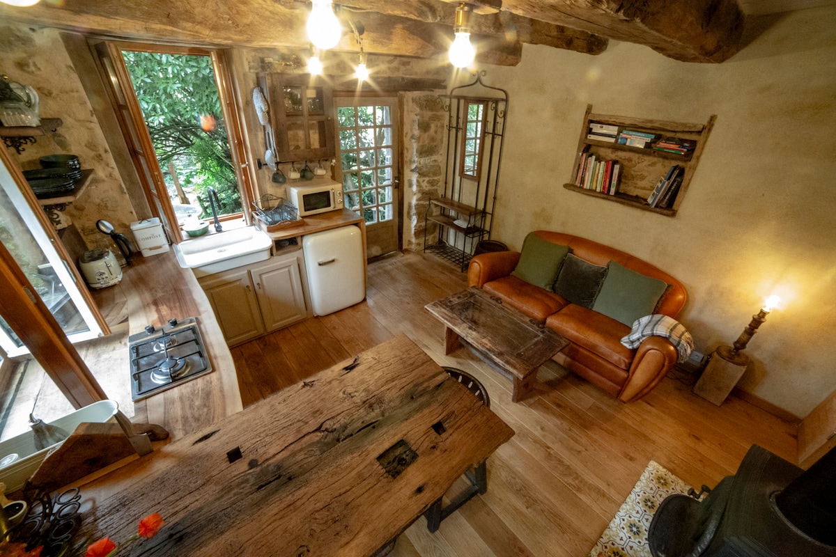 La maisonnette très chaleureuse est décorée de manière chic et traditionnelle. Petite terrasse en bois avec la vue magnifique sur la vallée. Cuisine tout équipée, poêle à bois, 1 salle de bain (douche ) 1 lit double queen size. Tout est rénové avec gout avec des matériaux écologiques. Ressourcez-vous et déconnectez vous dans ce logement inoubliable niché en pleine nature. Merci de nous contactez avant toute réservation pour être sur de ce que vous désirez.
