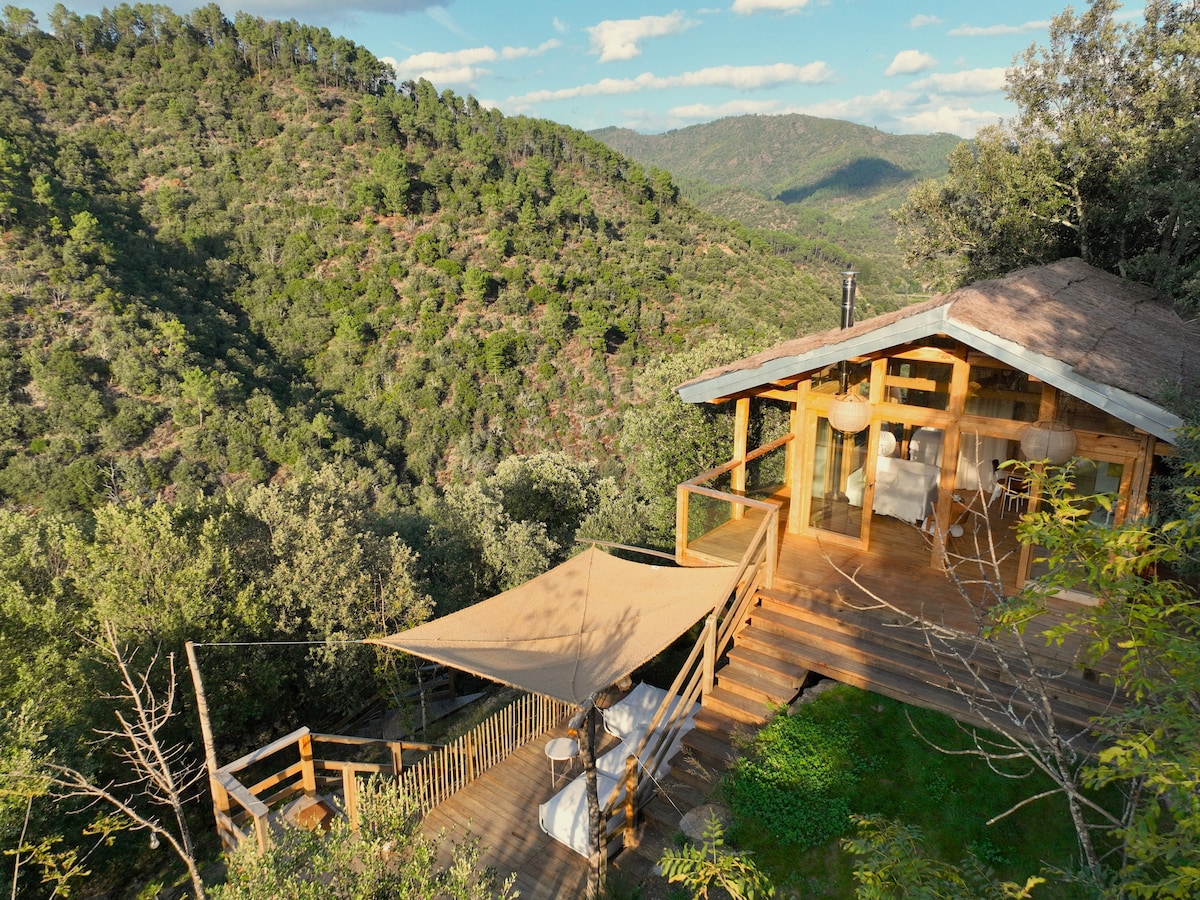 Unconventional accommodation in a green setting. You will hear the sound of birds and the song of the stream for a guaranteed rest with no other noises than those of nature. A romantic getaway as well for a cozy evening by the stove in winter or on a sunny terrace in summer. The rustic and minimalist aspects are also highlighted: dry toilets, reduced surfaces and layouts but executed with taste and simplicity.