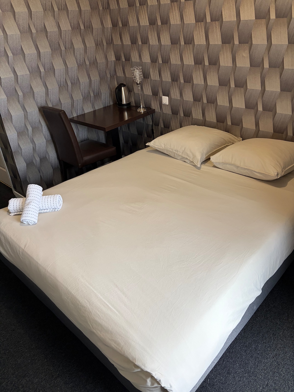This room offers a queen-size bed, private bathroom, desk, and sustainable toiletries. A compact yet comfortable setting designed to recharge and refresh. Airbnb guests have access to the roof top pool and various hotel amenities. City tax of 3.60 Euro/per night/per person will be charged at the hotel.