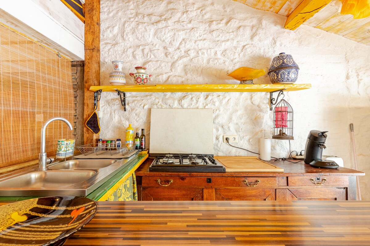 Maison Emye, Âme authentique et lieu de caractère au cœur de Montpeyroux. Découvrez une cuisine lumineuse qui dessert deux niveaux accueillants. Elle dévoile une salle de bain avec grande baignoire puis une vaste pièce à vivre aux murs bruts, belle hauteur sous plafond , canapé convertible et coin nuit au calme, Une table en bois et enfin une terrasse intime pour un bain sous les étoiles. À l’étage chaque détail inspire la sérénité d’une Suite élégante avec vidéoprojecteur et douche pour deux.