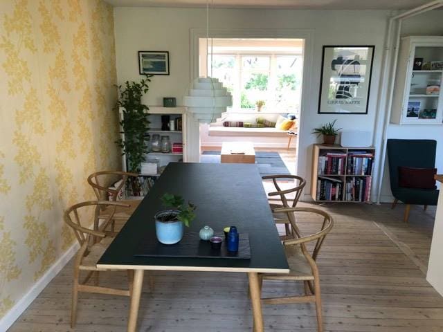 Charming small house (Villa) in Copenhagen with two bedrooms, lounge/dining room, small bathroom and kitchen, making it ideal for a longer stay and adventure in Copenhagen. Fast WiFi, free parking, close to transport links and bicycles are available to hire. Great place to relax, close to Amager Beach Park with central Copenhagen within 25 minutes commute. Visit the Blue Planet Aquarium or take a plunge in Kastrup Søbad. Netto and Lidl supermarkets are 5 minutes walk for any groceries you need.