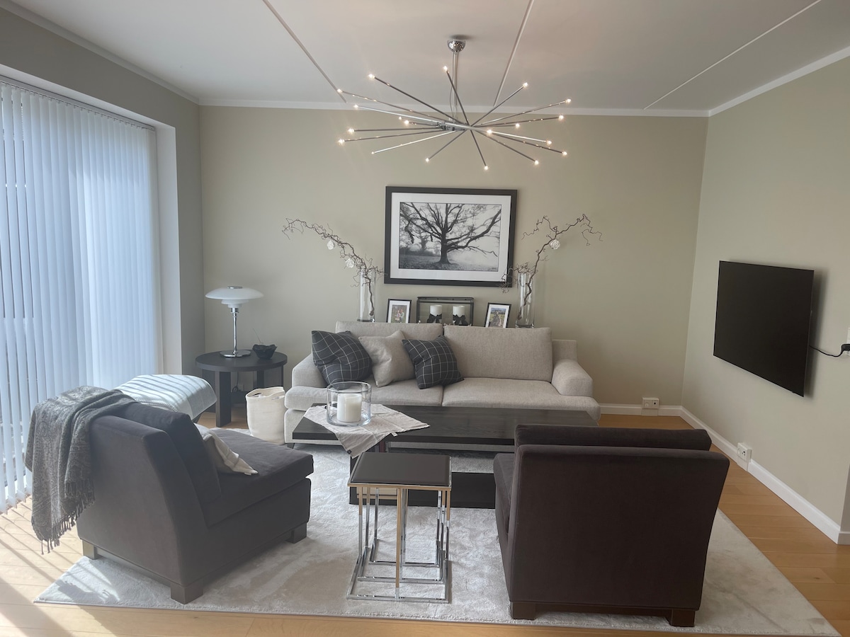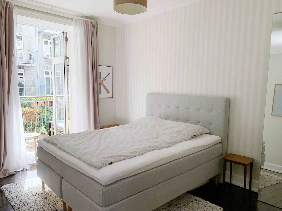 New bright apartment 81 m2, with lift, balcony & garage with your own car charger. The apartment is suitable for 3 adults or 2 adults and 2 children. The property is step-free and wheelchair accessible. Very good location: - 10 min walk from Tivoli and Town Hall Square. - 5 min walk to Metro st. - 50 meters from outdoor harbour bath. - a lot of nice cafés and stores nearby (also bike rental).