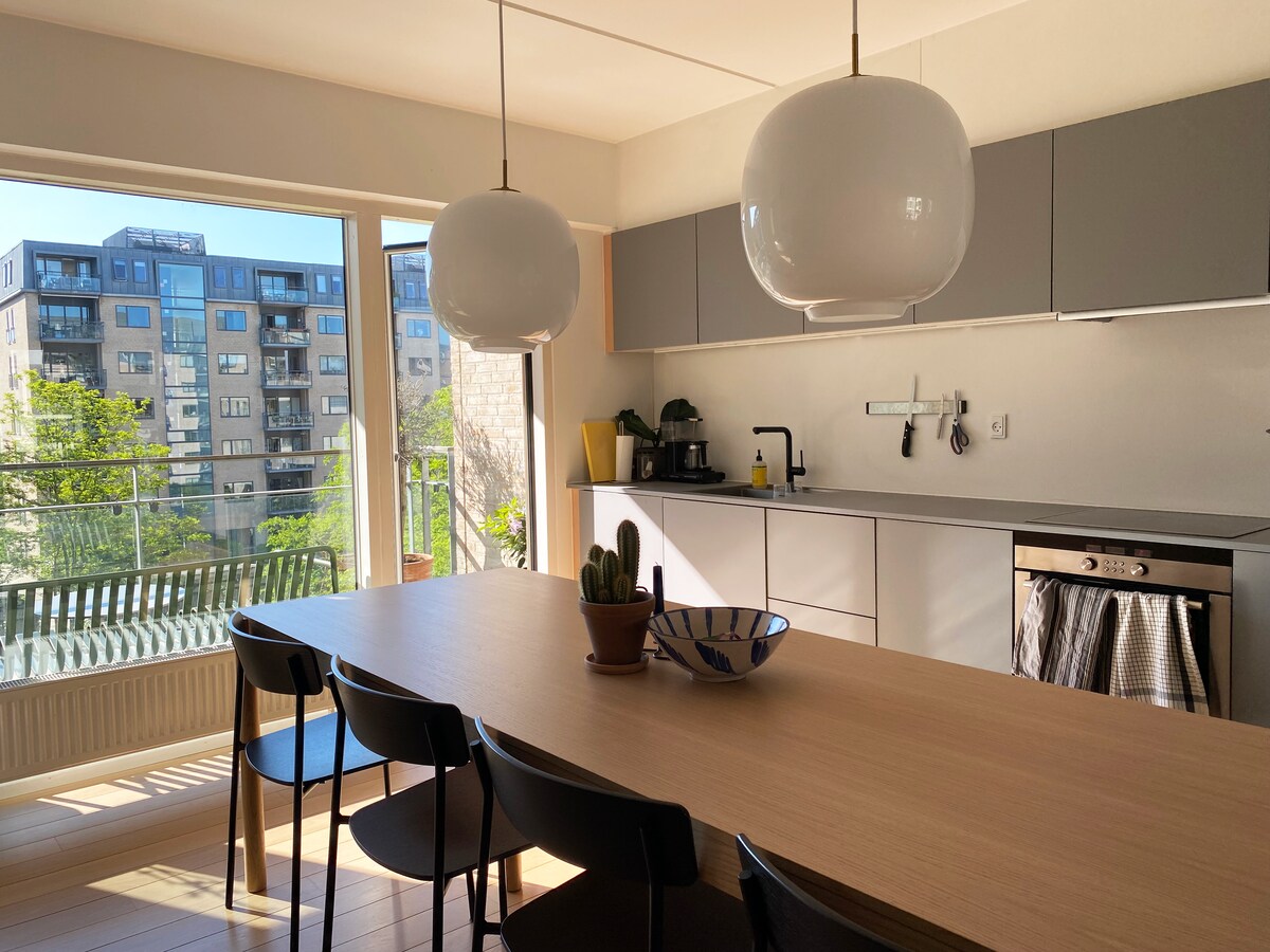 Dejlig lys to værelses lejlighed på 59 m2. Lejlighed på 5. sal i et roligt og maritimt miljø på en ø ud til Københavns havn og Enghave kanal. Moderne lejlighed fra 2018, vestvendt med eftermiddags- og aftensol og skønne solnedgange. Lille altan. I kan svømme i kanalen og havnen. Perfekt lejlighed til et par. Ligger uden for centrum - der er 3 km til Centrum/Rådhuspladsen/Tivoli. Let at leje cykler - fx Donkey Republic. 400 m til Metro station "Enghave Brygge". Der er byggeaktiviteter i området.