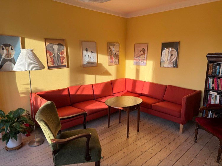My apartment consists of three, spacious rooms and a kitchen with a dining nook, and you have access to your own, private terrace with seating arrangement. The apartment is situated in a quiet neighbourhood just 15 minutes walk from the city center and only af few minutes from a range of public transportation. The apartment is on the ground floor, so you only need to climb two steps to enter. The bedroom has a european king size bed (160X200 cm)