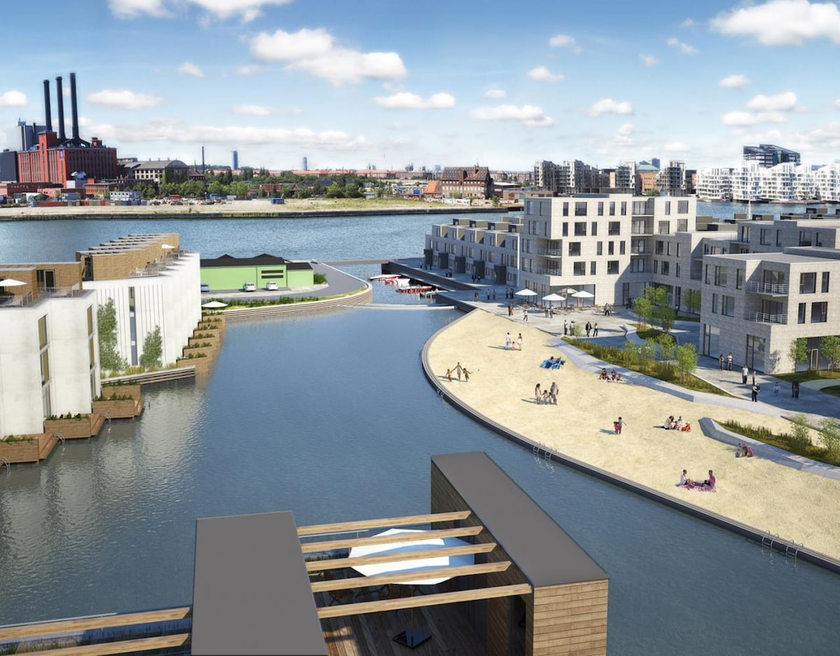 Attractive apartment surrounded by water - 3 metrostops/6 minutes from the absolut center of Copenhagen. Get it alle: light, nature, balconie, one on the roof with a view over Copenhagen and the bridge to Sweden. Take a swim or take the waterbus and go shopping, see the opera, enjoy the people or a beer i Nyhavn