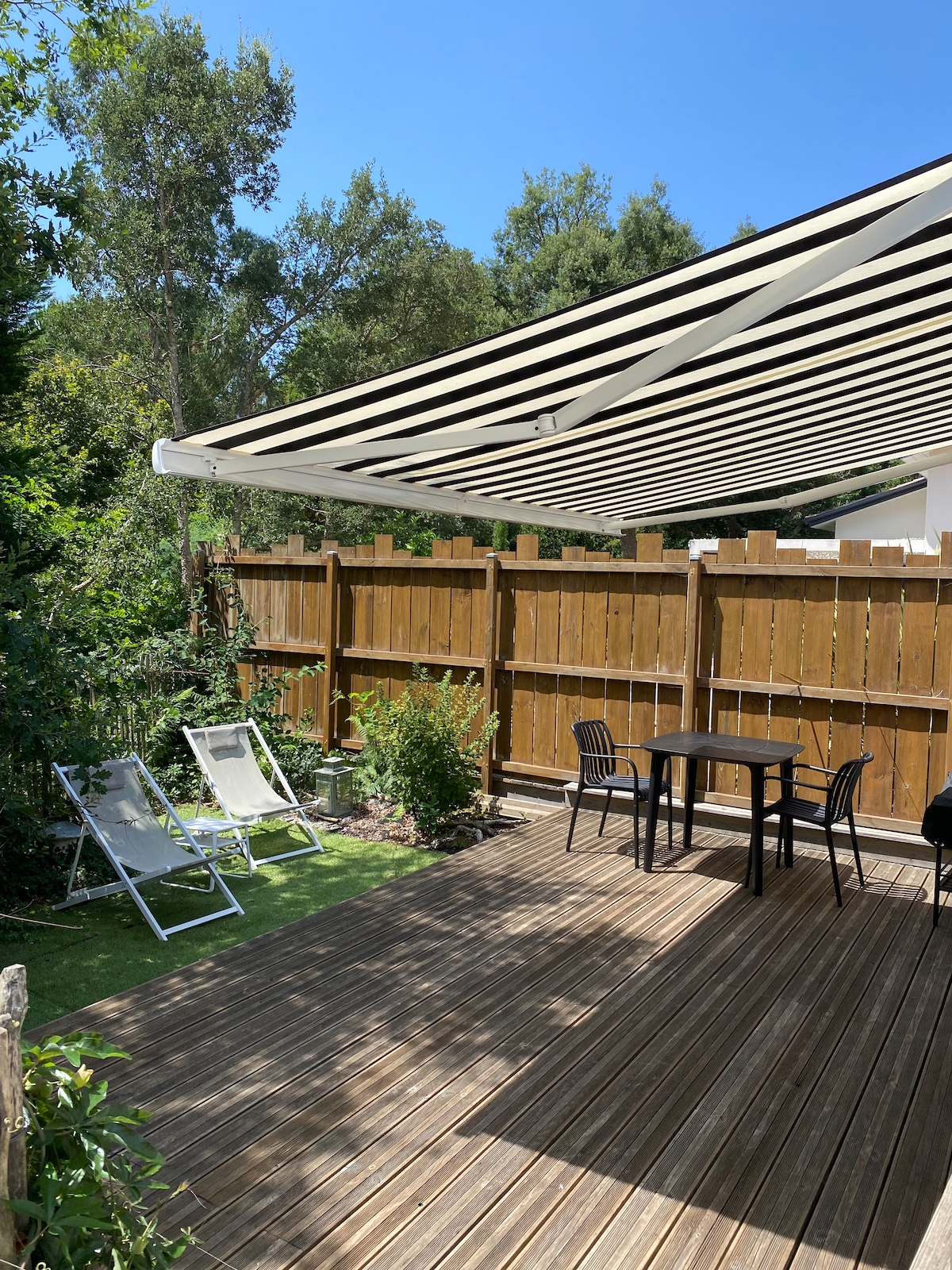 Venez vous détendre au calme dans notre T2 tout neuf de 26m2. Situé entre les Landes et le Pays Basque, à 5min de la plage et 20min de la frontière Espagnole. Proche de toutes commodités : Boulangerie, Hypermarché, Cinéma, trambus... Logement composé d'une cuisine équipée avec four, plaque induction, micro-ondes, lave linge etc.. Salon, canapé,TV et WiFi. Chambre avec couchage double, penderies et salle d'eau. Parking privatif Jardin paysager privatif avec terrasse salon de jardin, plancha....