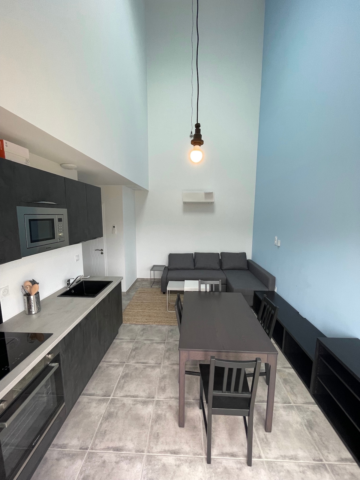 Appartement type duplex de 30m2 sur deux niveaux, type T1, chez l'habitant, avec entrée privative: * rez de chaussée: cuisine tout équipée, petit espace de repas, salle de douche, toilettes * 1er étage: lit queen size 160x190, rangements, bureau, TV, fauteuils, climatisation * une petite place de parking devant la maison (une trop grosse voiture ou un van ne rentrent pas) * linge fourni: draps + serviettes de toilette + torchon + essuie main + tapis de bain ATTENTION : PAS DE WIFI