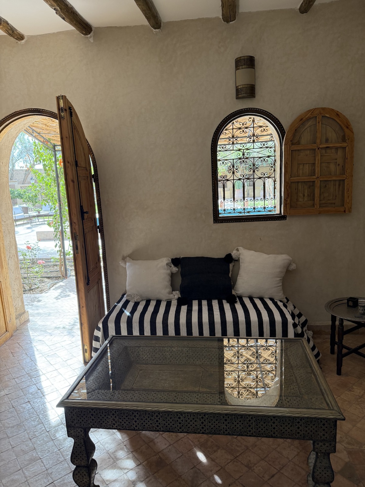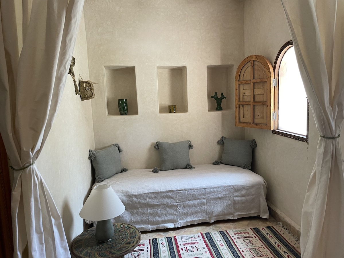 Notre Riad Dar El Hana au cœur de la médina dans un environnement très calme, proche du souk et toutes commodités à pied ou en calèche. Petits déjeuners inclus. Une piscine, des terrasses et vue sur l’anti-atlas depuis le patio. Nombreuses visites aux alentours. Khadija notre merveilleuse cuisinière saura vous régaler et vous accueillir chaleureusement. Le Riad possède une salle de massage avec possibilité de demander les services d’une masseuse expérimentée en supplément (35€ les 45 minutes)